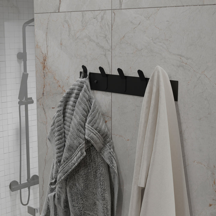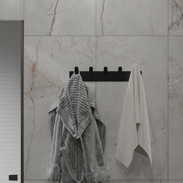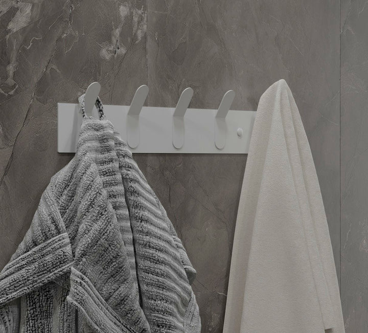 This wall-mounted rack with 5 sturdy hooks offers a durable and elegant solution for organizing towels, robes, and accessories. Made from powder-coated stainless steel, it resists moisture and requires minimal maintenance.