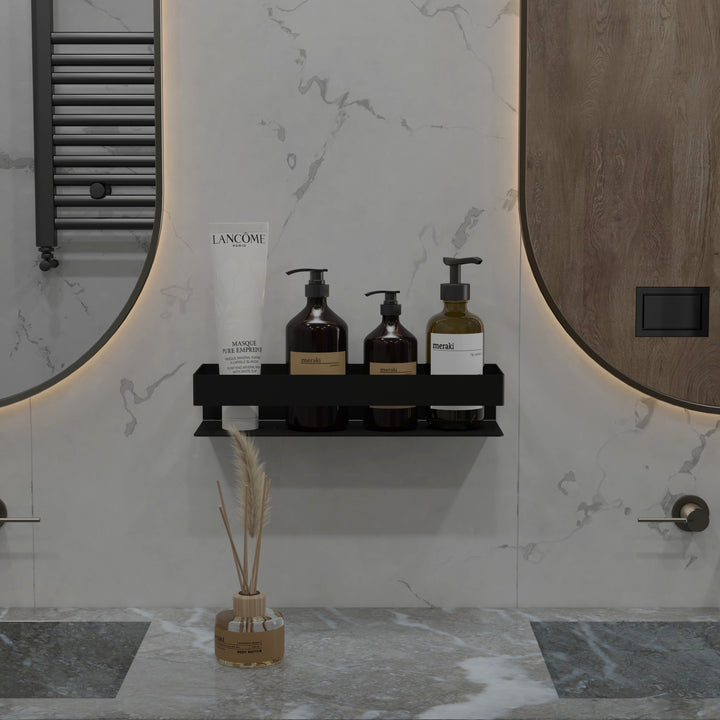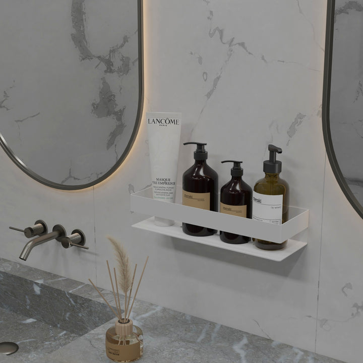 • Almacenamiento versátil: Ideal para colocar artículos de tocador, elementos decorativos o pequeños objetos esenciales, este estante ayuda a mantener tu baño ordenado y organizado.