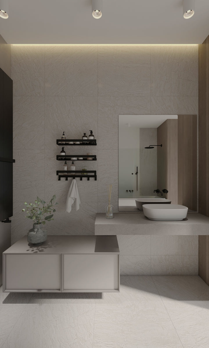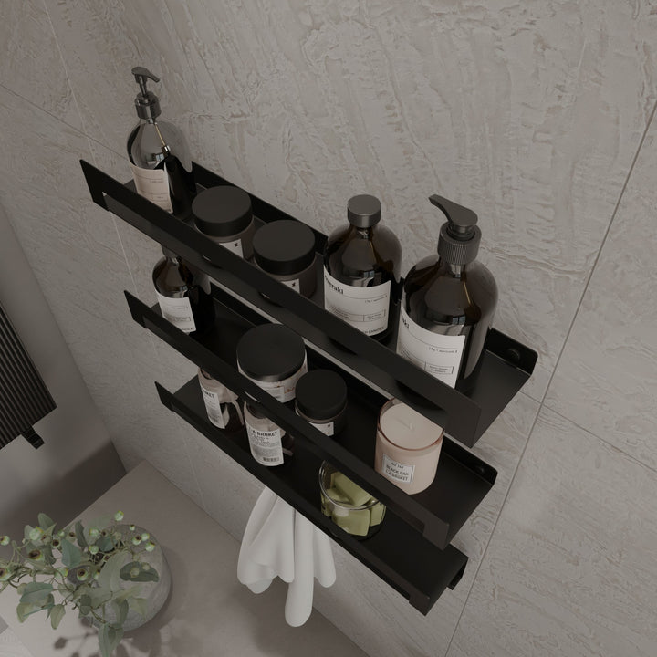 Fabricados en acero inoxidable con recubrimiento en polvo resistente a la humedad, estos estantes combinan durabilidad y estilo moderno. Su diseño compacto ayuda a aprovechar al máximo el espacio disponible.