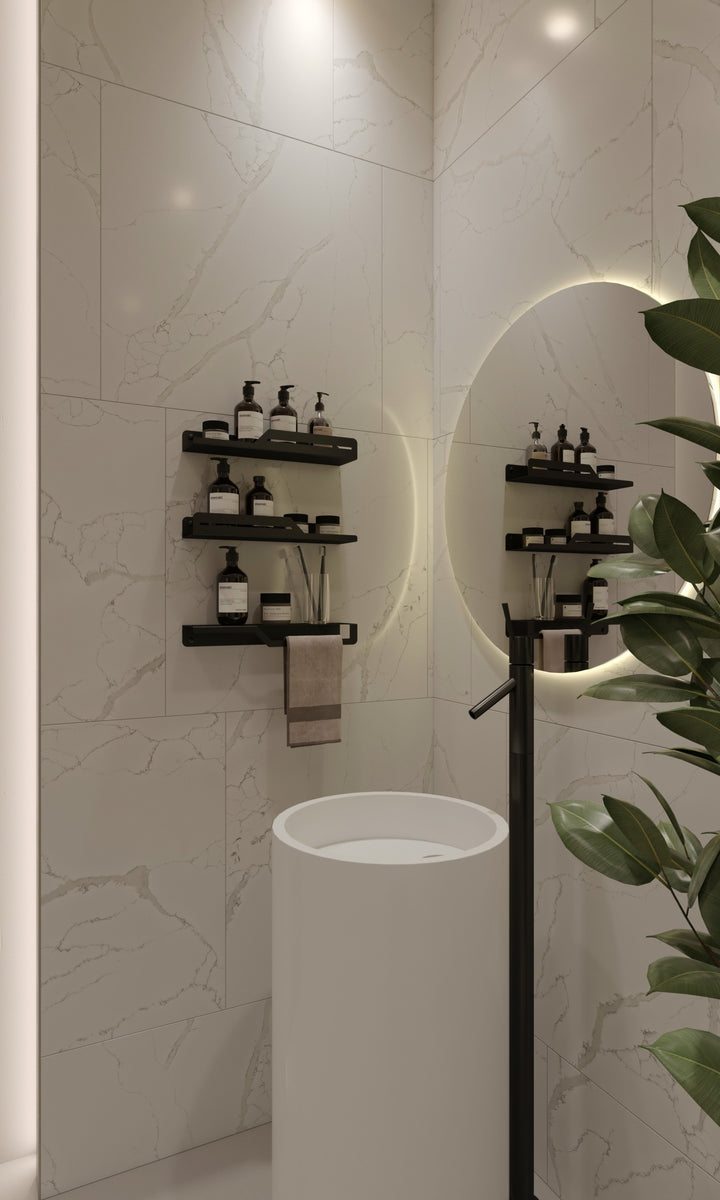 • Materiales de alta calidad: Fabricados en acero inoxidable con recubrimiento en polvo, estos estantes son resistentes a la humedad y al paso del tiempo, manteniendo su apariencia moderna y elegante.