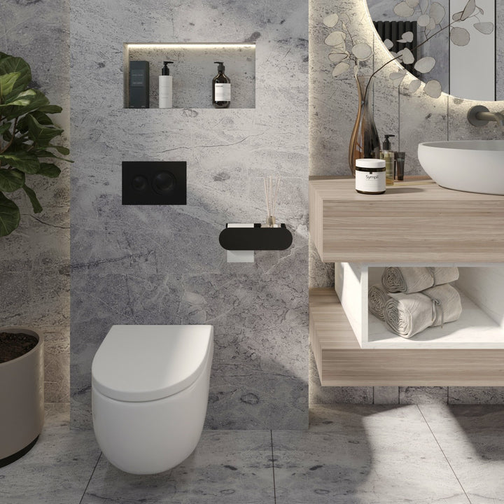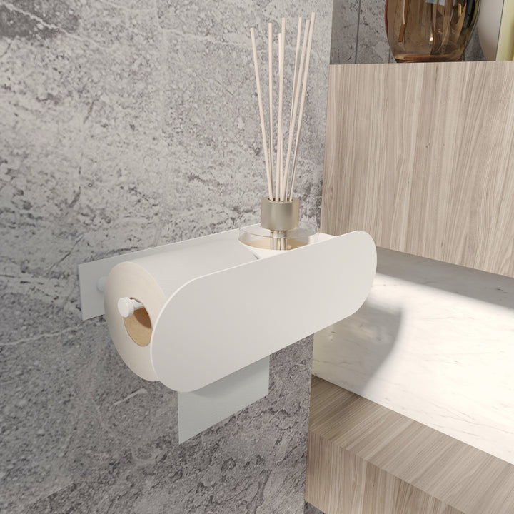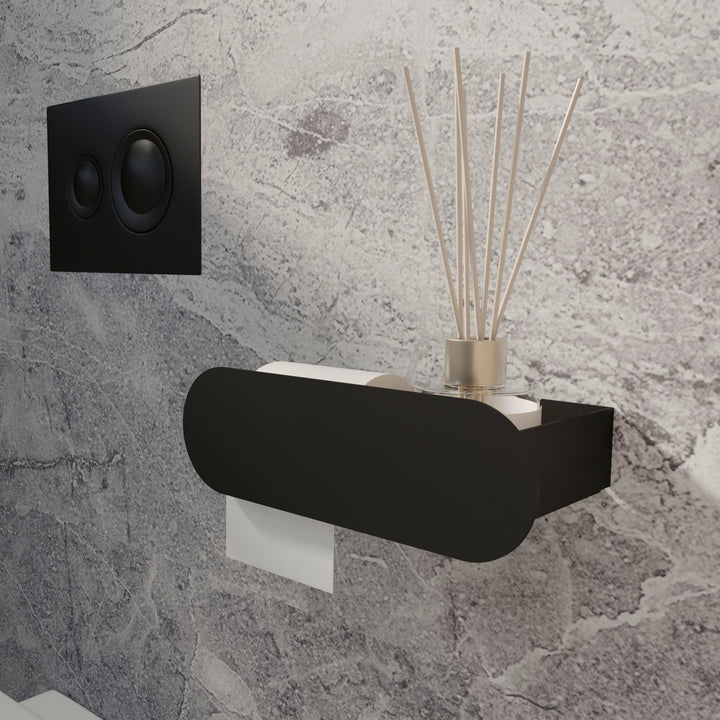 Realza tu baño con este elegante portarrollos con estante integrado: la combinación perfecta de funcionalidad y estilo moderno. Diseñado para tener tus artículos esenciales a mano, ofrece una solución práctica sin sacrificar la estética.