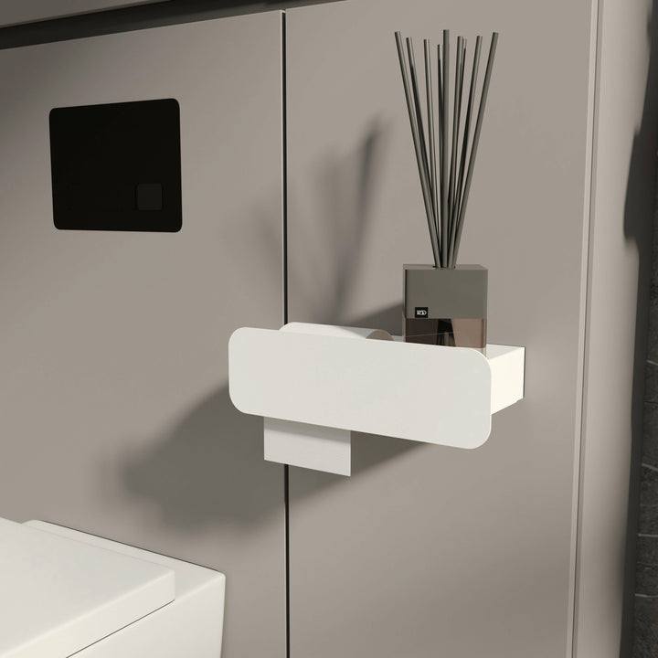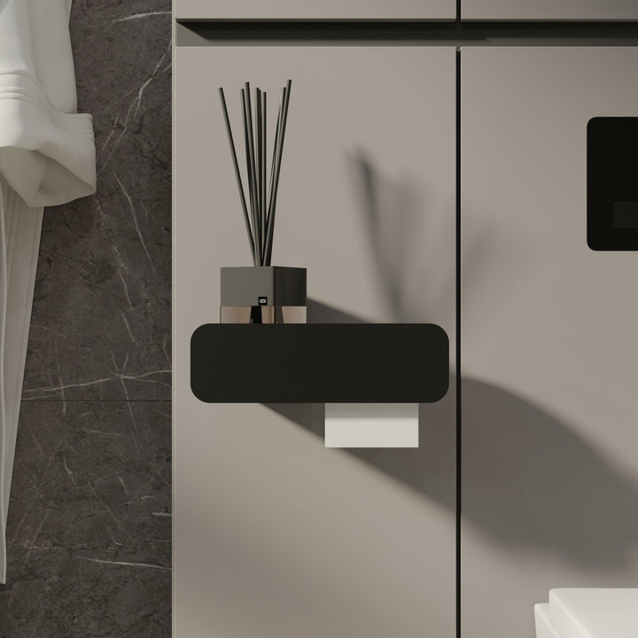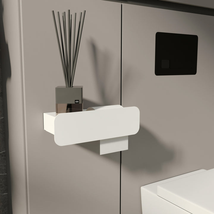 · Uso multifuncional: este producto actúa como un confiable soporte para papel higiénico y un estante compacto, perfecto para guardar artículos como su teléfono, ambientador o detalles decorativos.